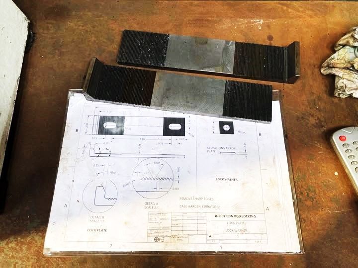 Alignment and adjustment of fittings for the front brake shaft progresses, ready for final setting and drilling of the bearing brackets.